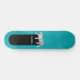 Este fresco patinaje de color azul verde azulado tiene un ilustracion de tigre blanco con rayas negras. Este tablero está listo para ser personalizado con un nombre u otro texto con letras blancas en un fondo negro.
