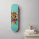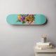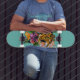 una obra de arte decorativa de un temible tigre que emerge de flores de colores y estrellas negras en un patinador.