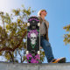Patinaje de marca Dd, hecho en negro, con gráficos de cráneo blanco y lirios de tigre rosado. Personalice el campo de texto rosa personalizado para que se ajuste a sus necesidades.