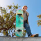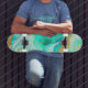 Skateboard Tinta de Alcohol Turquesa Blue Gold Geode