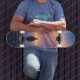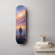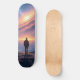 Add a creative touch to your walls or the skatepark with this skateboard, which features an intrepid adventurer at the top of a mountain, gazing into the infinity of the universe against the breathtaking backdrop of the setting sun.