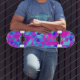 Este funky groovy vívido triángulo geométrico colorido neón magenta azul y cian arte digital abstracto fue hecho con Mirror Lab