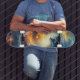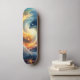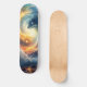 Two sea monsters chase each other above a dark, storm-tossed ocean at night. Their swirling forms create a modern, imaginative interpretation of yin and yang. One creature luminous and ethereal, the other shadowy. Colors in blue and orange. Cool gift idea!