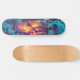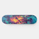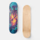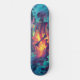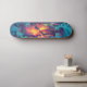 Título: Cubierta para skeleton Ukiyo-E | Graffiti eléctrico | Descripción del diseño gráfico del vector de fantasía oscuro: ¡Conozca el espíritu rebelde de las calles! Esta electrizante cubierta de skateboard incluye un esqueleto de arte vectorial empapado en patrones Ukiyo-e y marcas de graffiti de neón, irradiando energía desafiante contra un borroso paisaje de ciberpunk. Con tonos azules eléctricos, violetas profundas y verde neón brillando bajo una iluminación volumétrica, este diseño fusiona la artesanía japonesa tradicional con un borde de fantasía oscuro, perfecto para los patinadores que gobiernan tanto la acera como las sombras.
