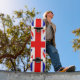 Un tablero elegante del patín con ese gran Union Jack del biritsh se separó sobre él para todos esos patinadores cariñosos del británico.