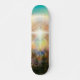 Visionaria y transparente Ciudad de la Luz a los pies del monte Shasta con árboles en primer plano.