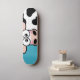Cubierta de patinaje para vacas rugosas. El diseño presenta una bovina blanca y negra en un fondo azul. Perfecto para patinadores chicas. Diseño © Lisa Marie Robinson