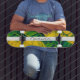 Skateboard Vibrante patrón verde y amarillo de hoja de plátan