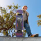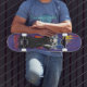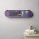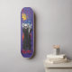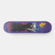 El cráneo malvado con cuernos de carnero, colmillos y sangre goteante sostiene un rayo. Este es un cráneo malvado que hará de tu patineta un paseo malvado.
