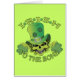 El cráneo verde con un gorra de Leprechaun con acentos de shamrock está justo a tiempo para el día de San Patricio. El mensaje dice "IRIAR AL HUESO".