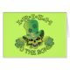 El cráneo verde con un gorra de Leprechaun con acentos de shamrock está justo a tiempo para el día de San Patricio. El mensaje dice "IRIAR AL HUESO".