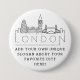 Un botón de personalizable que representa la hermosa ciudad de Londres, Inglaterra. Este botón presenta un estilizado ilustracion deco del paisaje único de la ciudad junto con su nombre debajo. Debajo del nombre de la ciudad hay un lugar para tu lema único o declaración sobre tu ciudad favorita.