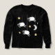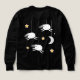 Featuring three fluffy white sheep floating among stars and a crescent moon, this comfy black sweatshirt brings bedtime calm and warmth to your day.