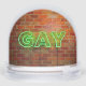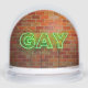 SlipperyJoe símbolo de neón gay brillante luces verdes eléctricas brillantes letras montadas en pared de ladrillos rojizos orgullo gay regalos de identidad celebración LGBTQIA apariencia industrial urbana celebración de amor comunidad de identidad vivir tu verdad visibilidad poder vibrante brillo contrastes texturizado telón de fondo elegantes curvas eléctricas casting artístico aura viva aura