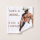 SlipperyJoe's save horse ride straw cowboy gorra musculoso hombre sin camisa torso sosteniendo la silla bisel físico bien definido cincelado seis paquetes gorras chaps saddle cinturón negro hebilla plata rancher life muscles ripel viaje salvaje delante del atrevido vibra occidental artístico gays regalos LGBTQIA yehaw blue jeans