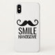======================== Un bigote y las palabras SMILE HANDSOME en CUALQUIER fondo de COLOR en este divertido estuche de teléfono. Haga clic en PERSONALIZAR para CAMBIAR el color de fondo, CAMBIAR nuestro dicho, AÑADIR su nombre, su texto inicial o cualquier otro texto al personalizar de este funda por usted mismo o dar como regalo. Perfecto para un regalo de cumpleaños y más. Ver más en PhoneCaseFashions.com