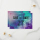 Para la pareja cuya historia de amor está escrita entre las estrellas...una boda con temática galaxia, salvo que las tarjetas de fecha atraigan la atención de todos. Los detalles del texto son personalizable y están sobre un fondo espacial en color morado, azul, verde, rosa y blanco.