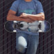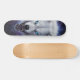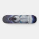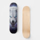 Unleash the wild on the streets with this captivating skateboard deck design featuring a ferocious, snarling wolf head. Rendered in a stunning dark fantasy illustration style, every detail of its textured fur is brought to life, culminating in piercing, electric blue glowing eyes that command attention. Set against a mystical backdrop of a cosmic nebula swirling with deep purples and blues, this design evokes raw power and otherworldly energy. Perfect for riders who embrace their inner beast and want a board that truly stands out from the pack. Ride with the spirit of the wolf.