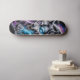 Unleash the wild on the streets with this captivating skateboard deck design featuring a ferocious, snarling wolf head. Rendered in a stunning dark fantasy illustration style, every detail of its textured fur is brought to life, culminating in piercing, electric blue glowing eyes that command attention. Set against a mystical backdrop of a cosmic nebula swirling with deep purples and blues, this design evokes raw power and otherworldly energy. Perfect for riders who embrace their inner beast and want a board that truly stands out from the pack. Ride with the spirit of the wolf.