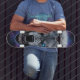 Unleash the wild on the streets with this captivating skateboard deck design featuring a ferocious, snarling wolf head. Rendered in a stunning dark fantasy illustration style, every detail of its textured fur is brought to life, culminating in piercing, electric blue glowing eyes that command attention. Set against a mystical backdrop of a cosmic nebula swirling with deep purples and blues, this design evokes raw power and otherworldly energy. Perfect for riders who embrace their inner beast and want a board that truly stands out from the pack. Ride with the spirit of the wolf.