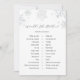 Tarjeta de juego con ducha de novia con un borde acuático de copos de nieve de plata. Una forma divertida de interactuar con los duchas.