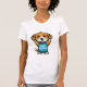 Curioso cachorro personalizado olfateando todo con letras atrevidas del cómic. Una graciosa camisa del dueño del perro para el humor y el estilo.