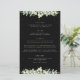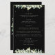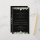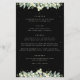 Un menú boda negro de cuatro platos, con un borde de nevadas pintadas a mano y eucaliptos en la parte delantera y una corona en la parte trasera. Todo el texto es completamente editable, y los puntos dispersos en la parte delantera y trasera se pueden borrar antes de pedir si lo prefiere. Por favor, vea esta colección en mi tienda para menús con arreglos florales alternativos, un número diferente de cursos y en diferentes tamaños, colores y formas. También hay elementos de coordinación disponibles.