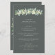 Un verde oscuro, un menú boda de tres platos, con una guirnalda de nevadas pintadas a mano y un eucalipto delante y una corona en la parte posterior. Todo el texto es completamente editable, y los puntos dispersos en la parte delantera y trasera se pueden borrar antes de pedir si lo prefiere. Por favor, vea esta colección en mi tienda para menús con arreglos florales alternativos, un número diferente de cursos y en diferentes tamaños, colores y formas. También hay elementos de coordinación disponibles.