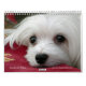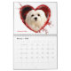 Este calendario lindo ofrece Snowdrop, un pequeño perro maltés dulce. Las imágenes son coloridas y estacionales de nieve al alto verano con las flores.