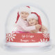 This is a fun and festive snow globe that is easy to customize with your own photos, name and date. One side of the snow globe is accented with your special photo and Merry Christmas; while the other side is decorated with the same photo or different photo, and names and date, (or your own special message if preferred). This makes a wonderful gift for the holidays, or the start of a family tradition. If help is needed customizing this item, just contact us at prettyfancyinvites@gmail.com.