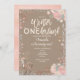 Invitación de invierno de primer cumpleaños de ONEderland con fondo blanco y copos de nieve perfectos para cumpleaños de invierno.
