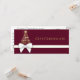 Lujoso y rico diseño vacacional con una espléndida silueta de árbol de Navidad con copos de nieve dorados. Decorada con un arco dorado blanco sobre un fondo violeta de frambuesa de color rojo oscuro y oscuro. Este certificado de regalo es perfecto para su pequeña empresa o para regalar a amigos y familiares.