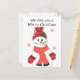 Un diseño bonito con un muñeco de nieve con gorra rojo, mitones y bufanda. Dice que le deseamos una feliz Navidad...