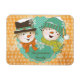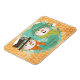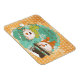 Nuestro imán de flexi personalizado Navidades Snowman incluye una pareja de muñecos de nieve con sombrero de punta, gorra de invierno, bufanda a rayas y narices de zanahoria sobre un fondo de copo de nieve naranja, pequeños puntos de polka verde azulados con copos de nieve de blanco y un banner verde azulado que puedes personalizar fácilmente con un nombre.