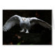 Snowy Owl With Open Wings - Photograph of a snowy owl standing on a log with wings spread and looking directly at the camera.