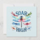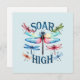 Esta tarjeta de saludo cuenta con una libélula colorida y la frase "muy alta", lo que lo convierte en un regalo perfecto para amigos, familiares o uno mismo.