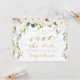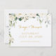 Tarjeta de anuncio de boda rústica de peonías blancas y vegetación plateada.
