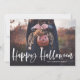 Sobrecarga de letras de pincel blanco tarjeta plana de Halloween feliz | Enviar saludo de Halloween a la familia y amigos con esta tarjeta plana de personalizable de Halloween. Presentaba una cubierta con letras de pincel blanco con fondo de chevron. Esto está disponible en otros materiales y colores de papel