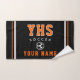 Show off your school pride with this bold custom rally towel featuring personalized school initials, the player's name, and soccer icon. Designed with a classic varsity style, this custom school towel is perfect for athletes, students, and fans who want to represent their team in style. Easily customize the school initials and create standout game day fan gear.