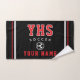 Show off your school pride with this bold custom rally towel featuring personalized school initials, the player's name, and soccer icon. Designed with a classic varsity style, this custom school towel is perfect for athletes, students, and fans who want to represent their team in style. Easily customize the school initials and create standout game day fan gear.