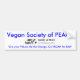 ¡Consiga a la más nueva sociedad del vegano de la pegatina para el parachoques de la PAZ, completa con nuestro logotipo y lema! ¡Separe el mensaje por todas partes que usted va!