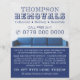 Sofá azul, volante publicitario de la empresa de eliminación por la tienda de tarjetas de visita.
