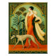 Esta poster es de una dama de arte muy sofisticada que se lleva su greyhound a pasear. Con un fondo Art Déco muy agradable, se trata de un poster de arte muy agradable que se puede enmarcar en la pared.