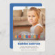 Elegante y elegante invitación a la fiesta de graduación de Kindergarten. Gran foto central con cabecera superpuesta de letras de colores mixtos. Tipografía y composición minimalistas modernas. Sofisticado y joven. Excelente invitación a seguir celebrando un paso espectacular en el propio viaje educativo.