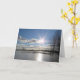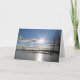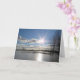 Un sol radiante en un cielo azul, reflejado en el agua debajo, es una escena pacífica para enviar tu mensaje de "pensando en ti", "gracias", "sentimiento", cuidado, preocupación, ánimo o simplemente "una nota para decir hola". El interior está en blanco, lo que te permite agregar tu propia nota personal.