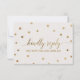 Esta tarjeta de solicitud de canción con lunares dorados es perfecta para una boda elegante. El diseño simple presenta confeti dorado chic sobre un fondo de champán cremoso con hermosa caligrafía de lámina dorada falsa. ¡Crea la lista de invitados de tu boda y la lista de canciones de la pista de baile al mismo tiempo! Esta tarjeta de respuesta de boda convenientemente pregunta a los invitados si podrán asistir a tu boda y también qué canción los hará bailar.