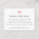 Desliza estas tarjetas pequeñas en las invitaciones de tu ducha de bebé cuando solicitas libros en lugar de tarjetas. El diseño presenta letras negras de moda con un pequeño ilustracion de corazón rosa en la parte superior. Un poema dulce explica la petición del libro: "sólo una petición, esperamos que no sea difícil // Por favor, traiga un libro en lugar de una tarjeta // Al firmar su nombre, recordaremos y compartiremos // su dulce regalo, incluso cuando no esté ahí". Personaliza con el nombre y la ducha del invitado de honor en la parte inferior.