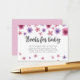Desliza estos pequeños libros para tarjetas de bebé en las invitaciones de tu ducha de bebé cuando solicitas libros en lugar de tarjetas. Con un diseño a juego en las flores de color rosa y púrpura, y un poema dulce que explica la petición del libro. Personalice con la madre el nombre y la fecha de ducha de la tarjeta si lo desea.