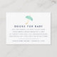 Desliza estas tarjetas pequeñas en las invitaciones de tu ducha de bebé cuando solicitas libros en lugar de tarjetas. El moderno diseño de género neutro cuenta con letras azul marino y un ilustracion de paraguas color verde pastel de menta en la parte superior. Un poema dulce explica la petición del libro: "sólo una petición, esperamos que no sea difícil // Por favor, traiga un libro en lugar de una tarjeta // Al firmar su nombre, recordaremos y compartiremos // su dulce regalo, incluso cuando no esté ahí". Personaliza con el nombre y la ducha del invitado de honor en la parte inferior.
