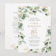 Esta exquisita invitación de cumpleaños 85 con eucalipto en acuarela, con adornos de hoja de oro y puntos salpicados de oro, es perfecta para celebrar a su esposa, madre, hermana, tía, amiga, abuela. Su diseño suave y fluido es moderno y tradicional. Seleccione Personalizar esta plantilla para hacerla única. En segundos verá sus impresionantes invitaciones de cumpleaños 85.